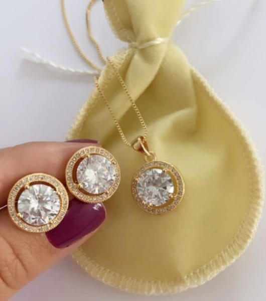 Conjunto Pizza Banhado em ouro18k Cravejado em zirconia.
