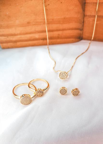 Conjunto Chuveiro Redondo Banhado em ouro18k Cravejado em zirconia